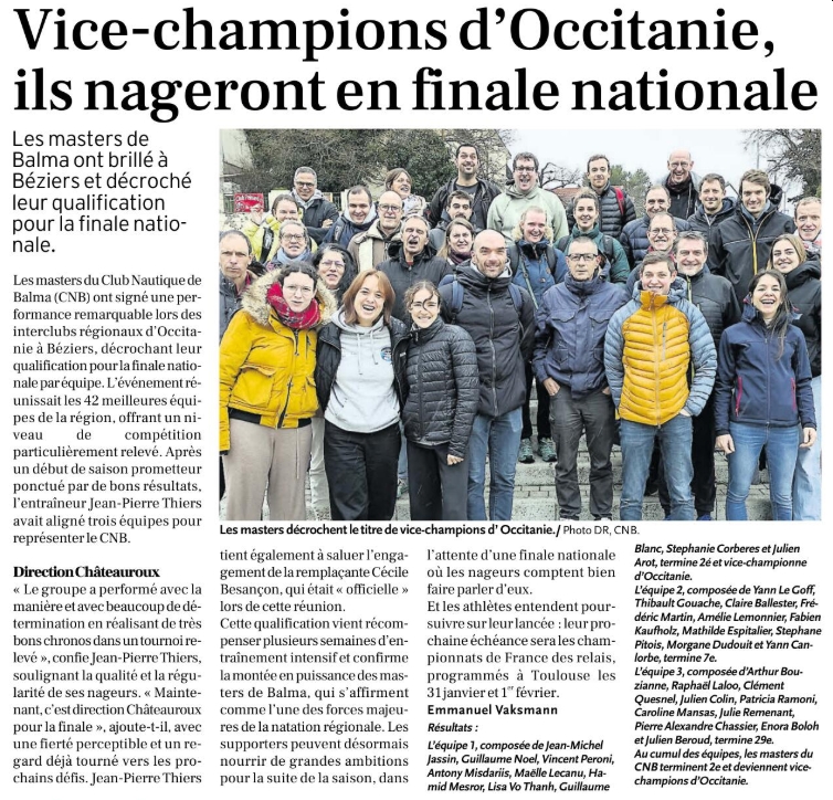 Article la depêche sur les interclubs masters à Béziers le 18 janvier 2026